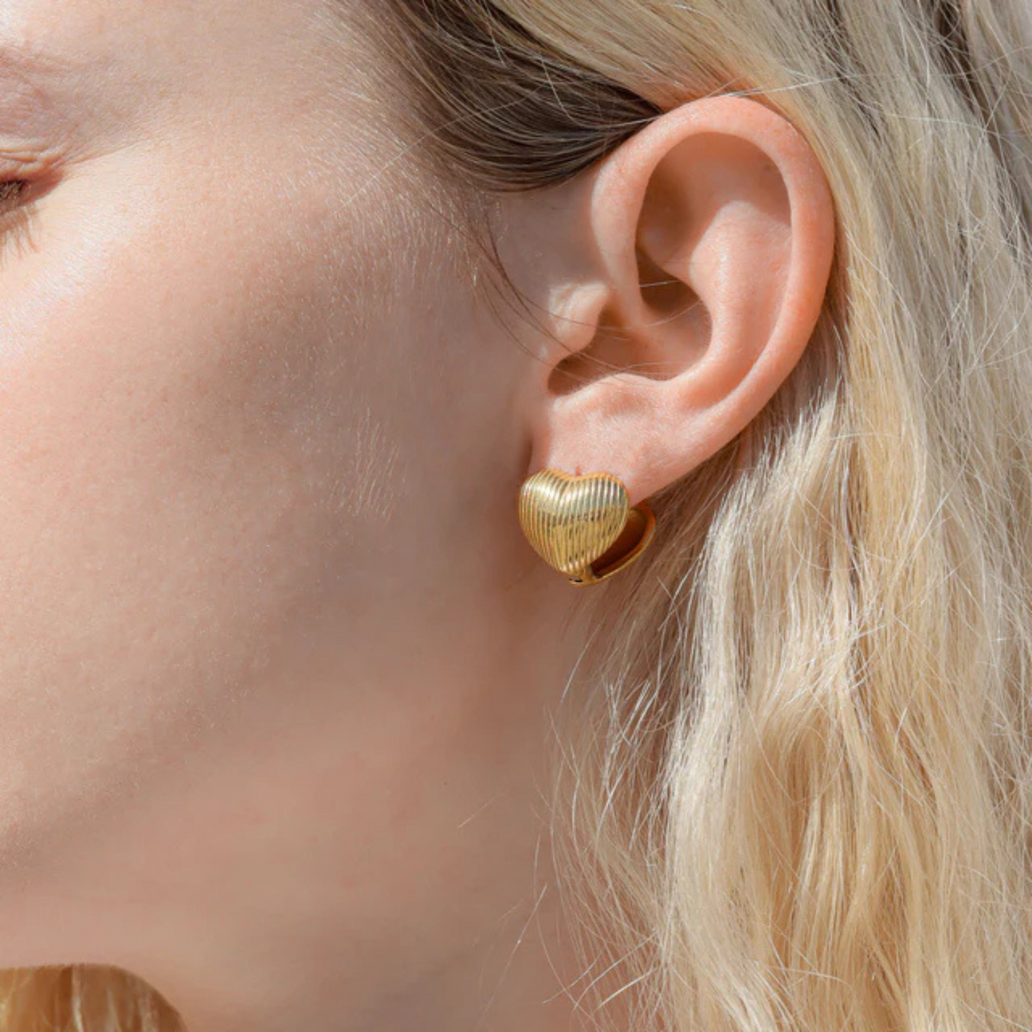 Ribbed Heart Stud Huggies