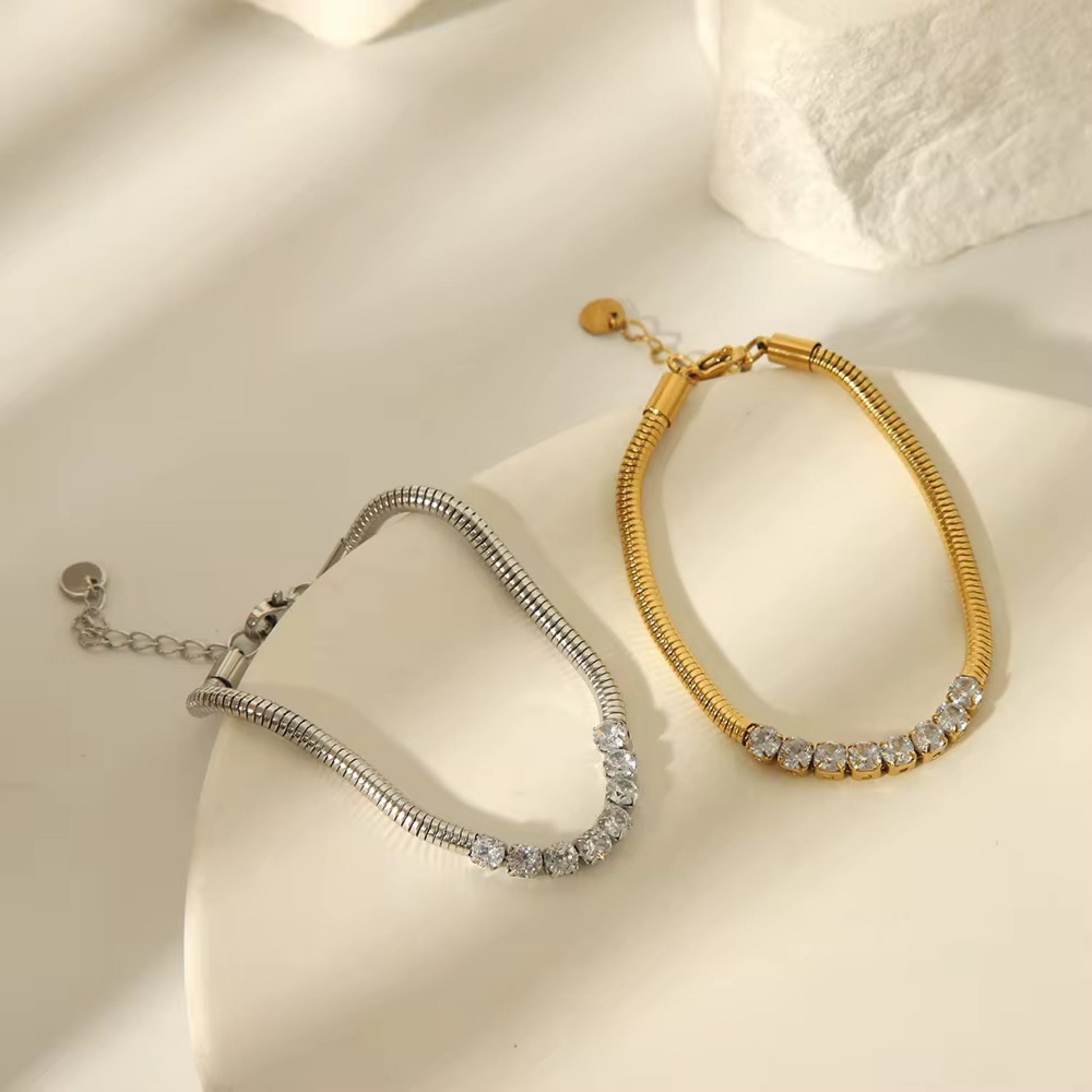 Crafted with high-quality, plated metals made for everyday wear. Waterproof, sweat-safe, and tarnish-resistant with proper care.